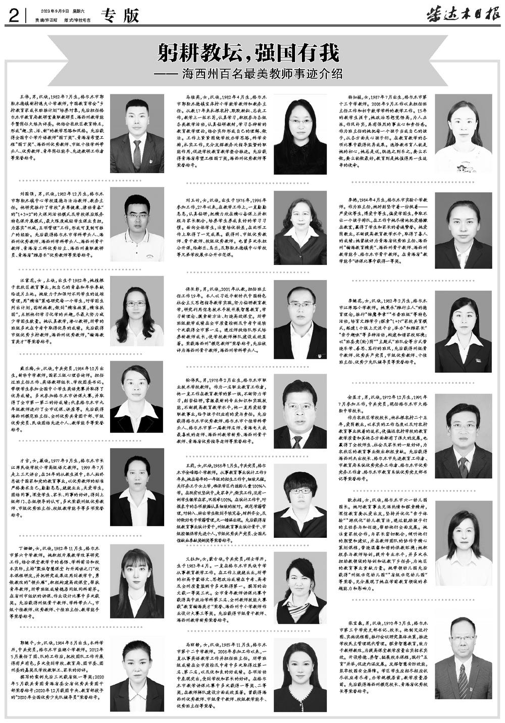 保长彭,男,汉族,2001年从教,担任班主任工作19年。本人以习近平新时代中国特色社会主义思想指导教学实践,努力钻研教育教学,研究利用信息技术手段开展智慧教育,学习新理念、摸索新方法、打造高效课堂。所带班级数学成绩在全市质量检测及中考中连续十次获得全市第一名。通过师徒结队形式培养新教师成长,使学校教师梯队建设成效显著。荣获海西州“模范教师”荣誉称号,先后被评为海西州骨干教师,海西州学科带头人。