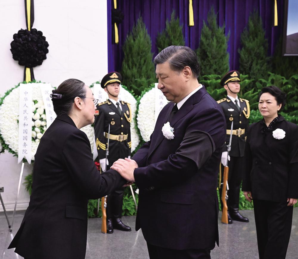 11月2日,李克强同志遗体在北京八宝山革命公墓火化。习近平、李强、赵乐际、王沪宁、蔡奇、丁薛祥、李希、韩正等前往八宝山送别,胡锦涛送花圈表示哀悼。这是习近平与李克强亲属握手,表示深切慰问。 新华社记者 谢环驰 摄