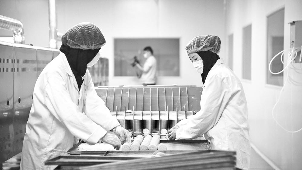 走进青海七色麦香食品有限公司生产车间,很难想象这是个村办企业,只见整个生产线装配着智能化机械系统,随着各项工序的平稳运转,一粒粒藜麦被加工成美味可口的饼干制品。