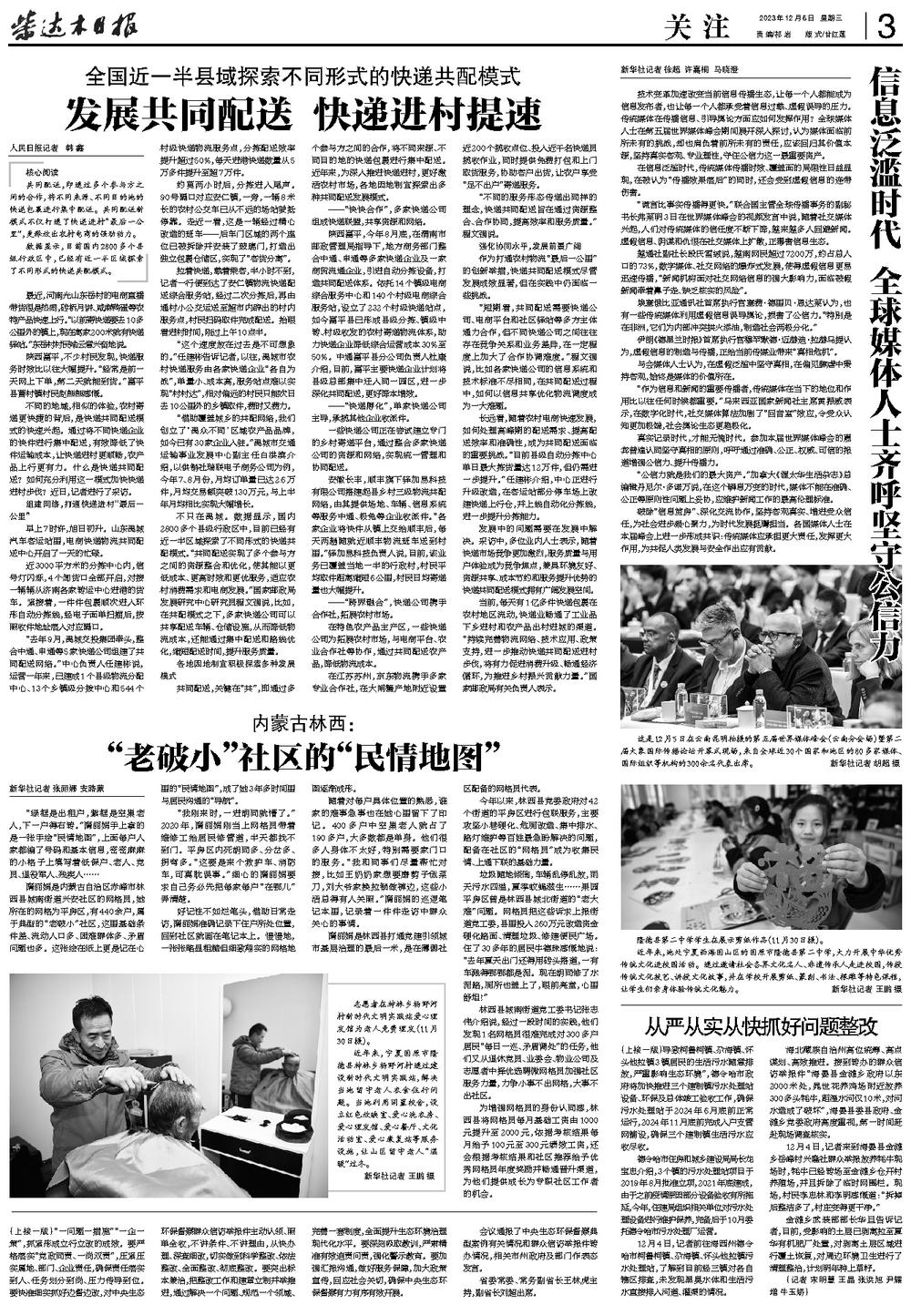 当前,每天有1亿多件快递包裹在农村地区流动,快递业畅通了工业品下乡进村和农产品出村进城的渠道。“持续完善物流网络、技术应用、政策支持,进一步推动快递共同配送进村步伐,将有力促进消费升级、畅通经济循环,为推进乡村振兴贡献力量。”国家邮政局有关负责人表示。