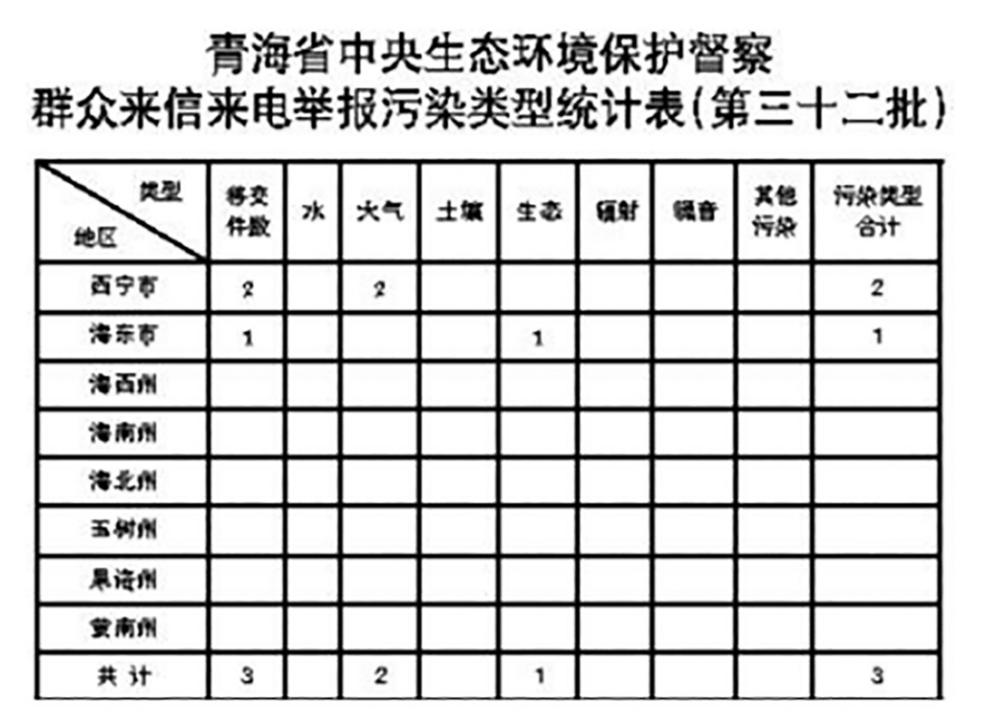 青海日报讯(记者 宋明慧) 12月24日,中央第五生态环境保护督察组向青海省交办第三十二批群众信访举报件共3件,均为来信件。交办的3件信访举报件涉及西宁市2件、海东市1件。群众举报反映问题涉及大气污染2件、生态破坏1件。截至目前,中央第五生态环境保护督察组向我省交办的第三十二批群众信访举报件已经移交相关市州和部门,各地和相关部门正在按照程序抓紧办理。