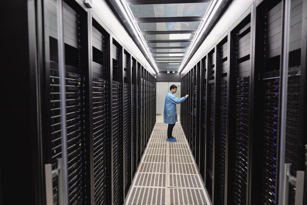11月28日,工作人员在内蒙古中科超算科技有限公司对设备进行巡检。近年来,内蒙古自治区呼和浩特市和林格尔新区发挥资源和区位优势,大力培育以大数据、云计算为特色的电子信息技术产业集群,构建数字经济发展新格局。新华社记者 李志鹏 摄