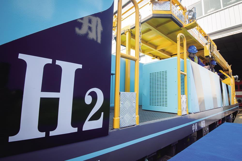 7月18日拍摄的由中铁武汉电气化局研制的氢能源地铁施工作业车。据了解,该作业车采用氢燃料电池与锂电池混合动力系统提供牵引动力,运行时没有废气和噪音,排放物为水,能应用于地铁、隧道、矿山等相对密闭的环境。 新华社记者 肖艺九 摄