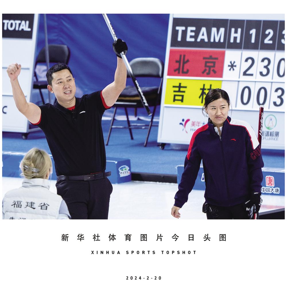 当日,第十四届全国冬季运动会冰壶项目公开组混合双人决赛在呼伦贝尔市内蒙古冰上运动训练中心举行。黑龙江队组合巴德鑫/姜懿伦夺冠,福建队组合王智宇/朱泽仰旭、北京队组合凌智/韩雨分获亚军、季军。