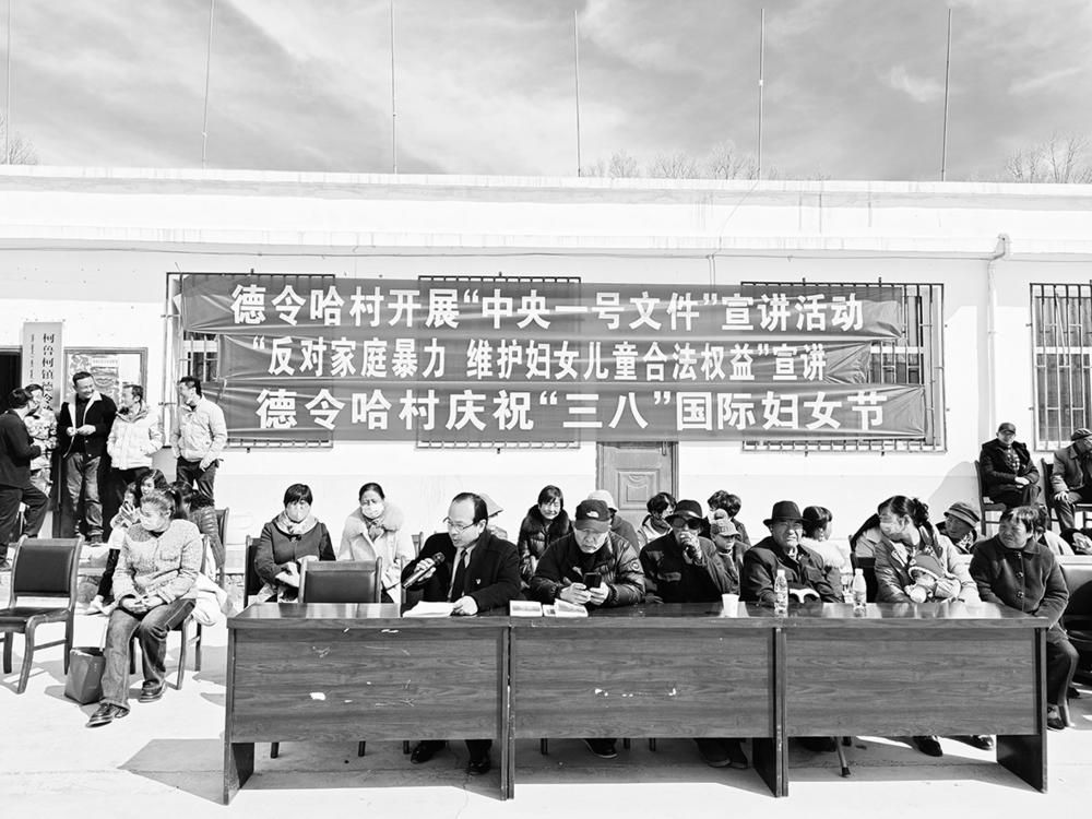 在三八妇女节到来之际,全州律师深入农村、社区围绕妇女权益开展普法下乡活动。图为阿克敦巴律师事务所律师在德令哈市柯鲁柯镇德令哈村开展妇女权益专题宣讲。本报记者 孙丹丹 摄影报道