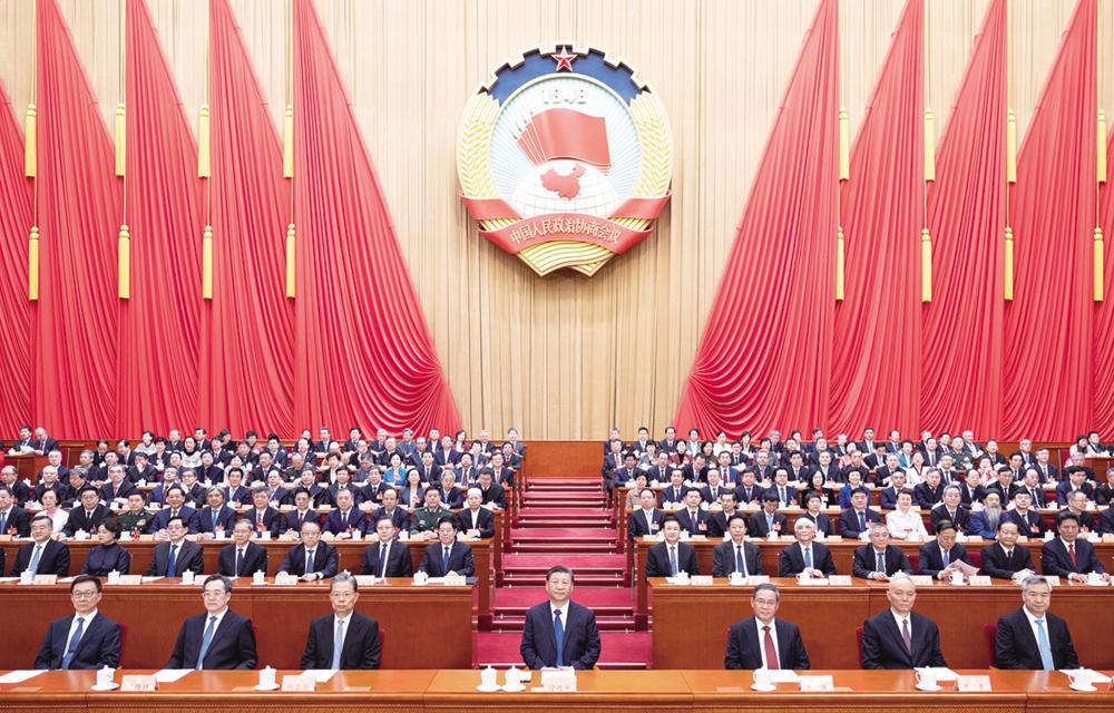 习近平、李强、赵乐际、蔡奇、丁薛祥、李希、韩正等在主席台就座。