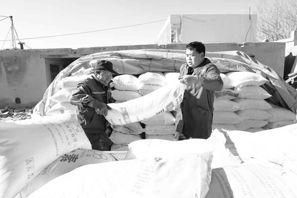 近日,记者在德令哈市柯鲁柯镇的海西民鑫农牧生产资料有限公司的库房里看到,各类春耕所需的化肥整齐堆放。不少周边的村民前来购买化肥等农资,销售人员一边忙碌着称重、搬运,一边回应着村民的问题。 本报记者 查宝音 摄影报道