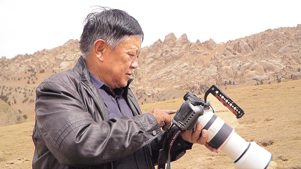 一辆越野车、一台单反相机、一台无人机、一顶遮阳帽和一个水壶是乌席勒的家当。4月11日上午,他开着“老坦克”,带着这些装备,离开家去拍照。这样的场景,在过去的40多年里已融入这个65岁老摄影人的日常生活。只要有时间,就带上摄影装备向瀚海戈壁进发,用手中的镜头记录野生动物的迁徙。成群的岩羊、马鹿、白唇鹿,湖中优雅的天鹅,还有罕见的雪豹、兔狲等众多野生动物在乌席勒的电脑上如同《动物世界》一般呈现在记者眼前,乌席勒向我们讲述着每一张图片背后的故事,他也成了海西生态之美的见证者。