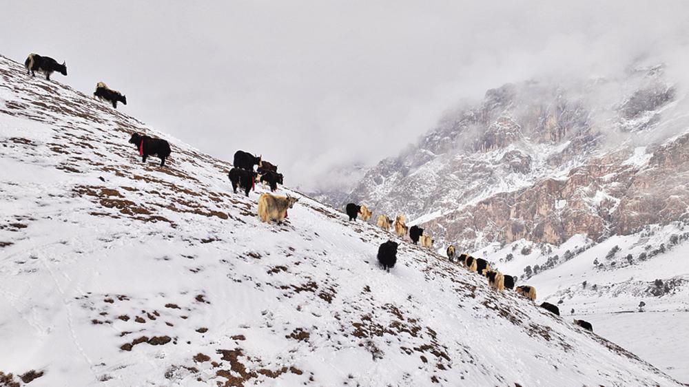 4月18日,德令哈市迎来一场春雪,把柏树山装扮成了银色的世界。山顶云雾缭绕,雪山与群柏相映成趣,岩羊自由奔跑着,时而觅食时而玩耍,给这片宁静的土地注入了无限生机与活力。本报记者 巴图那生 浩尔娃 摄影报道