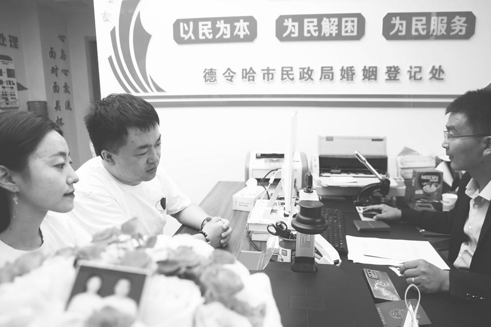 为满足广大群众“5.20”当天婚姻登记的需求,海西州各县(市、区)民政部门开通了电话预约登记服务,通过增加业务窗口和工作人员、延长工作时间、预约分时段登记等方式保障高峰日期婚姻登记工作秩序,并引导新人树立正确的爱情观、婚姻观,倡导“崇节俭、强责任、重担当”的文明婚俗新风。 本报记者 查宝音 摄影报道