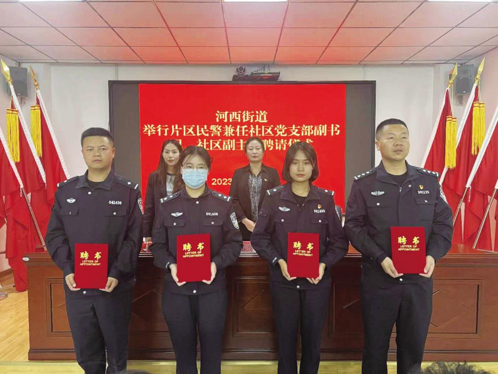 图①:德令哈市河西街道举行片区民警兼任社区党支部副书记、居委会副主任聘请仪式。
