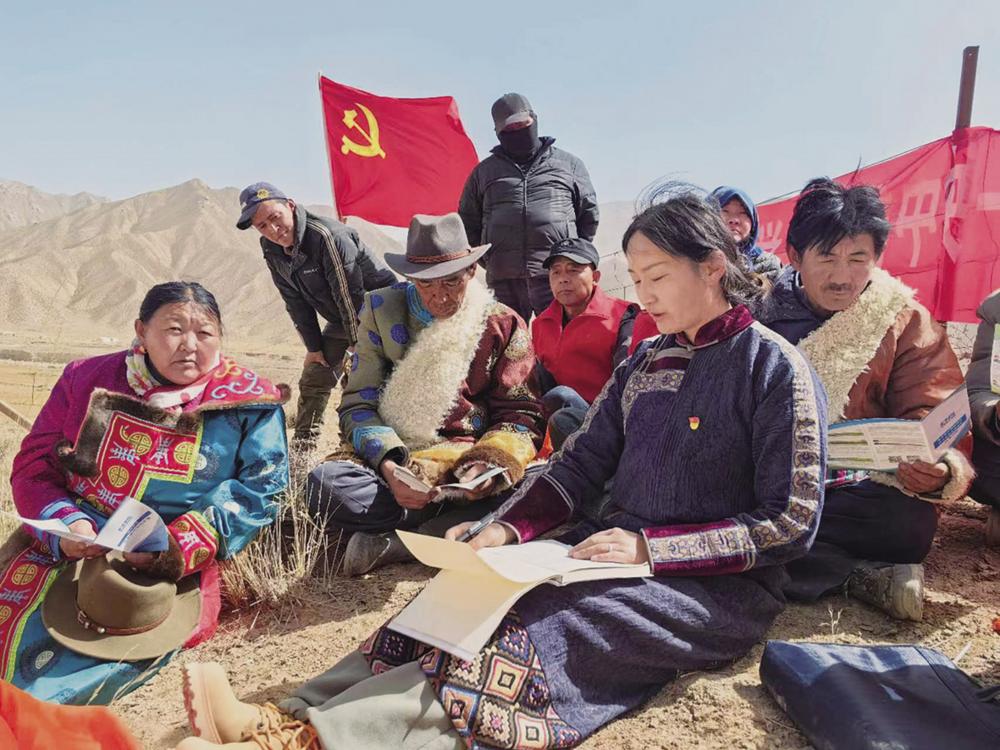 图③:都兰县香加乡党委组织党员干部下沉一线,将党的惠民政策等送到牧区草场偏远、居住分散的党员群众身边。