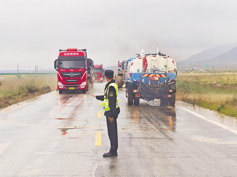 7月16日凌晨时分,乌兰县茶卡镇突降暴雨,G572贵乌高速公路出现漫水现象,导致交通受阻,给群众出行和物流运输带来极大不便。汛情就是命令、防汛就是责任,省交通执法局海西高速支队迅速启动汛期应急预案,所属茶卡大队执法人员闻雨即动,迅速响应,立即奔赴一线进行排涝清淤和应急保通工作。 截至7月16日下午4时,经过各部门十多个小时的连续奋战,贵乌线淤泥已经清理完毕,道路恢复通畅。 本报记者 郭曲太 摄影报道