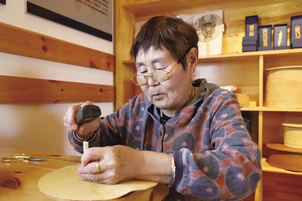 孟彩红是鄂伦春传统桦树皮手工制作技艺非遗传承人,博物馆运营后她主动来这里为游客介绍情况,展示手艺。“我想让我们民族的文化、技艺能够被更多同胞看到、学到、用到。”孟彩红说,她一有空闲,就带着村里妇女学习制作民族手工艺品,带动更多村民靠自己的双手增收。