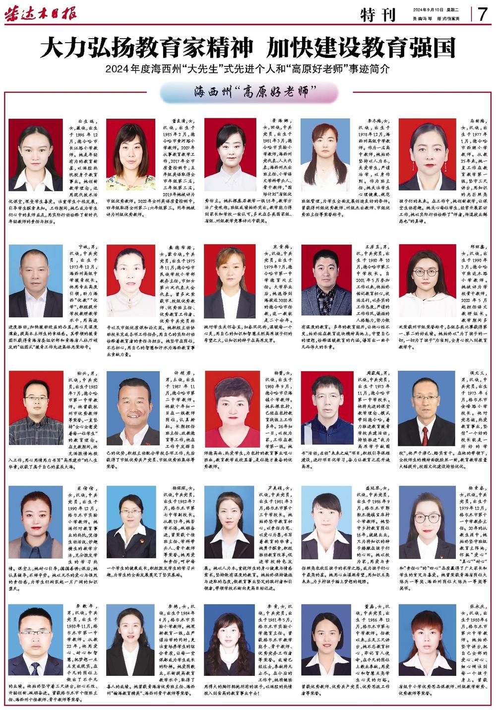 白生瑞,女,藏族,出生于1996年12月,德令哈市长江路小学教师。她是年轻有为的教育新星,以满腔热忱投身于教育事业。她创新教学理念,运用现代技术活化课堂,深受学生喜爱。注重学生个性发展,引导学生探索未知。工作期间,她已成为学生们心中的良师益友,用实际行动诠释了新时代年轻教师的责任与担当。