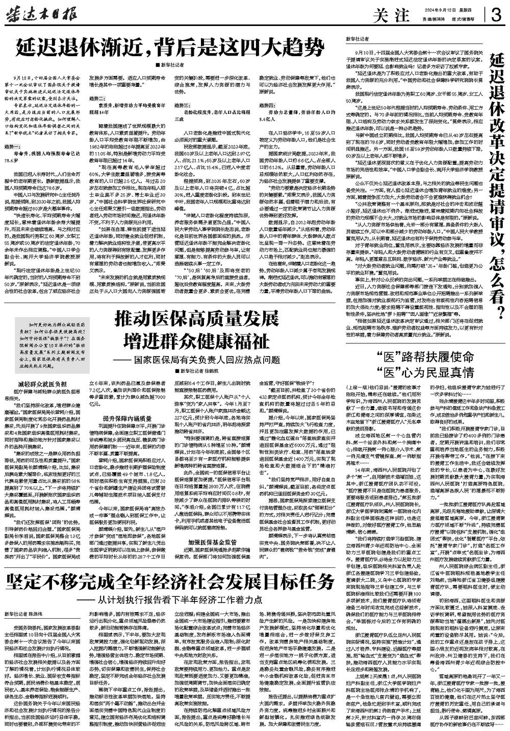 9月10日,十四届全国人大常委会第十一次会议审议了国务院关于提请审议关于实施渐进式延迟法定退休年龄的决定草案的议案,受到各方关注。