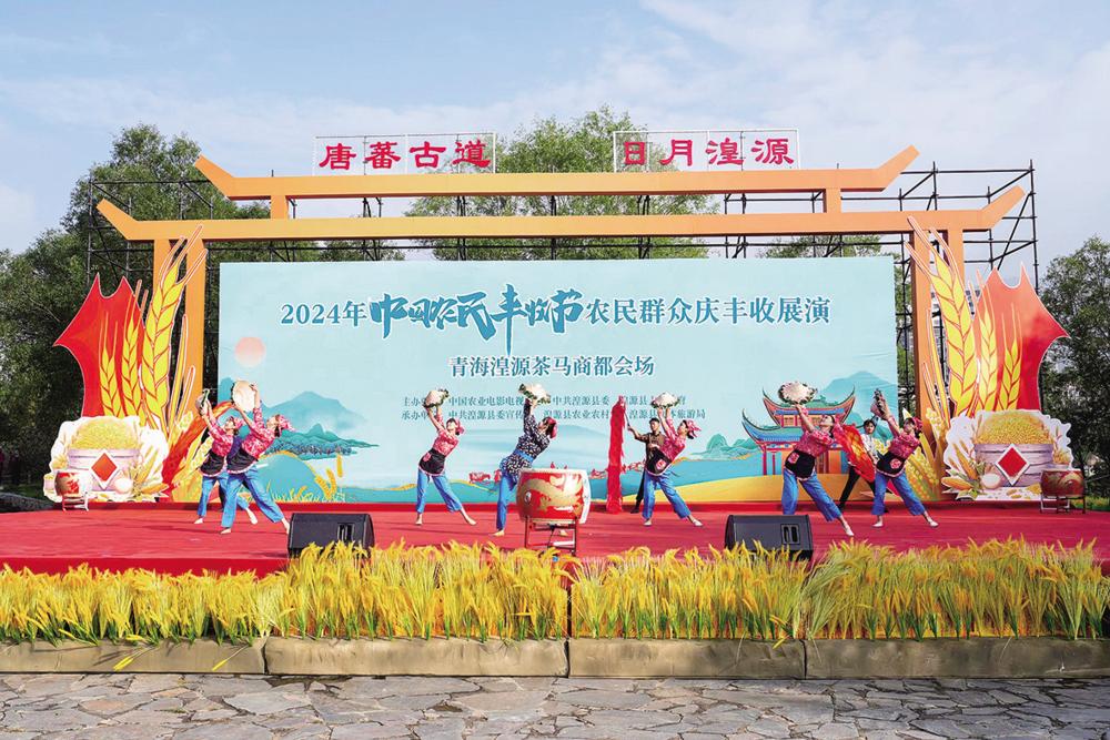 同一时间,2024年中国农民丰收节农民群众庆丰收展演青海湟源茶马商都会场异常热闹,精彩节目一个接着又一个。“这个叫草莓西红柿,你们尝尝。这个品种叫黄贝贝,口感特别好……”台下的农牧民观众观赏完节目,又能体验品尝农特产品,节日氛围感拉满。