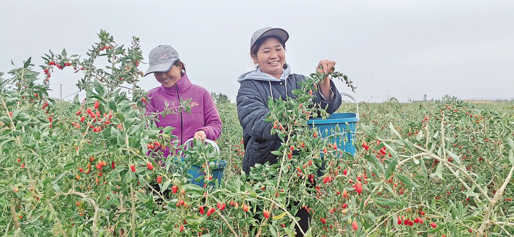 9月21日,记者走进都兰(国家)现代农业产业园枸杞种植基地,一颗颗圆润饱满的枸杞簇拥在翠绿的枝梢上,林地间到处是采摘工忙碌的身影。
