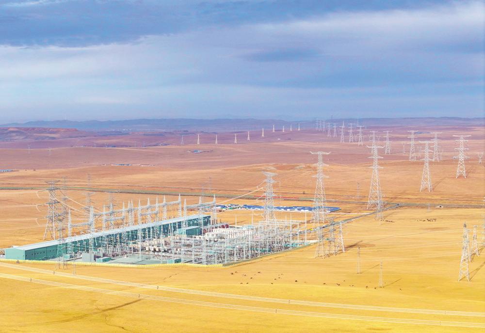 10月31日拍摄的张北——胜利1000千伏特高压交流工程胜利变电站(无人机照片)。 当日,张北——胜利1000千伏特高压交流工程顺利投运。该工程起于河北省张家口市张北变电站,止于内蒙古自治区锡林浩特市胜利变电站,是国家“十四五”电力发展规划重点项目,每年可向京、津、冀、鲁、苏等地输送电量约700亿千瓦时,将有力促进沿线各地风电、光伏等能源外送能力。新华社发(王正 摄)
