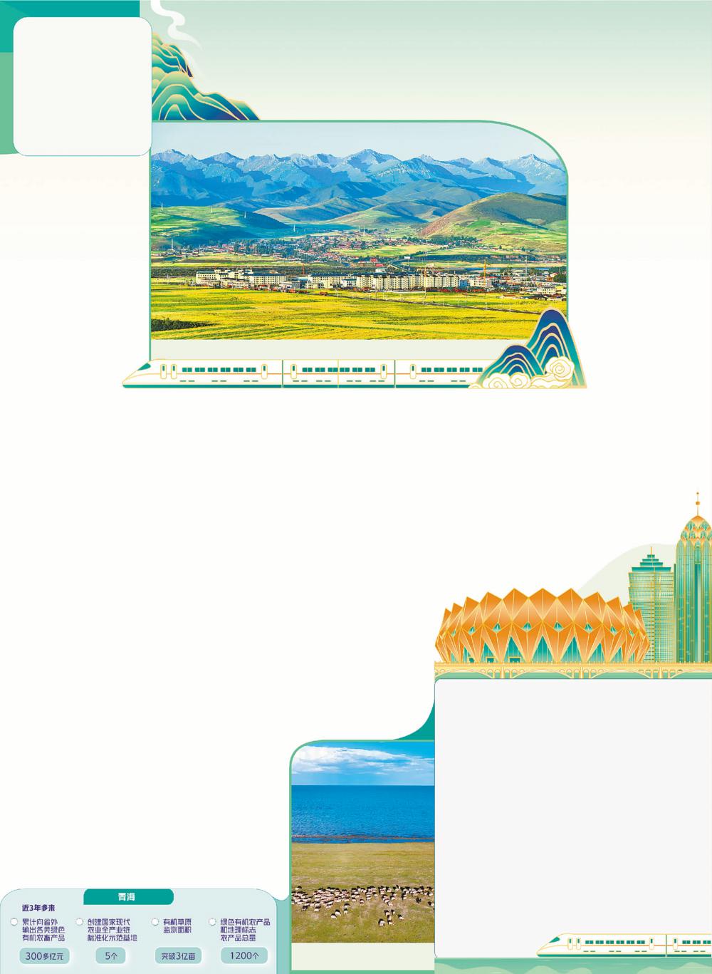 从产品到产业再到品牌,青海一步一个脚印,踏出绿色有机农畜产品的新天地。一批批“青字号”产品正在走出青海,不断擦亮“净土青海 高原臻品”的品牌形象。自打造绿色有机农畜产品输出地以来,青海围绕提质、稳量、补链、扩输路径,取得了一些阶段性成果,已创建国家现代农业全产业链标准化示范基地5个、有机农产品(牦牛、藏羊)全国基地5个、千头牦牛千只藏羊生产基地200个,有机草原监测面积突破3亿亩,绿色有机农产品和地理标志农产品总量达1200个。3年多来,青海已累计向省外输出各类绿色有机农畜产品300多亿元。