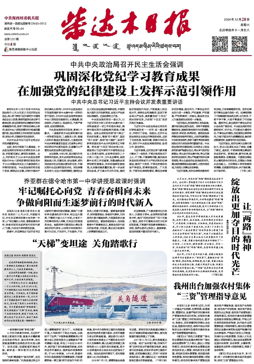 十年前的12月28日,随着最后一方土石的开凿,全长32.645公里,平均海拔超过3600米的新关角隧道宣告贯通。它的诞生,是中国铁路建设史上浓墨重彩的一笔,不仅开启了青藏铁路西宁至格尔木段的新纪元,更打通了高原儿女的希望之路。作为青藏铁路的“咽喉要道”,新关角隧道让“天梯”变坦途,缩短了地域间的距离,提高了沿线人民群众的生产生活水平,推动了海西经济社会高质量发展一路踏歌行!