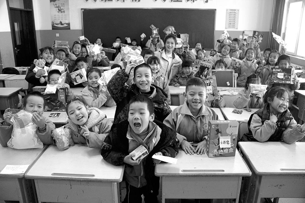 课堂上,第四届研支团成员徐渊棋化身“心愿魔术师”,缓缓打开了来自3360公里外的神秘包裹,按照满载希望的愿望清单,将礼物一一递到孩子们手中。孩子们高兴地拆开礼物,教室里洋溢着欢声笑语。