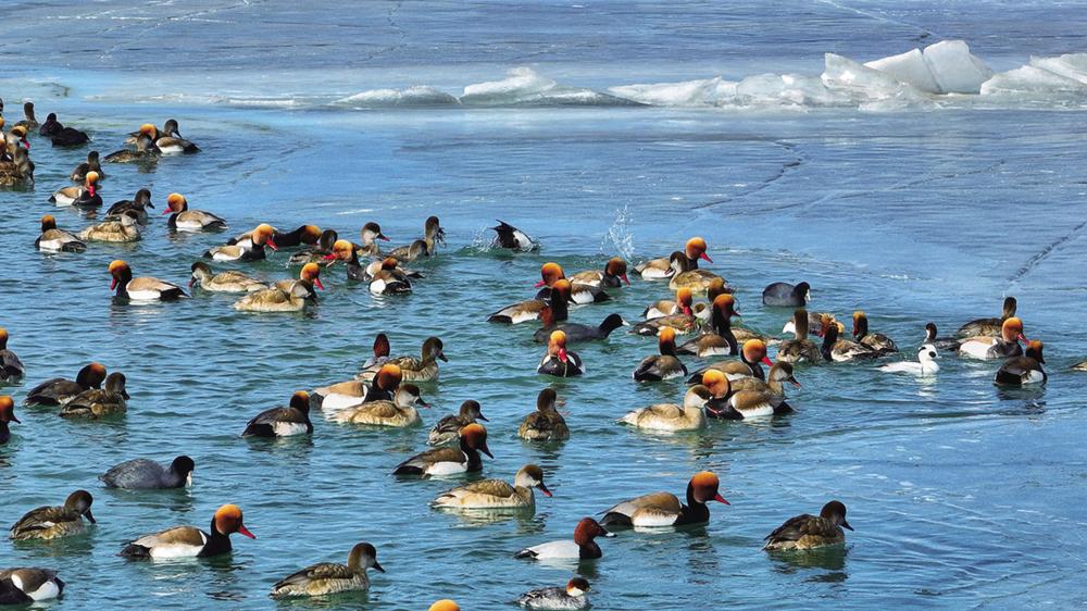 随着春日的脚步悄然迈进,大地渐渐苏醒,万物焕发生机。2月21日,德令哈市可鲁克湖迎来了大批候鸟。湖面的冰雪刚刚消融,成群的白鹭、大天鹅在水中舒展着优雅的身姿,赤嘴潜鸭、白骨顶鸡、白尾海雕、绿头鸭在水中自在嬉戏,它们在随风摇曳的芦苇丛里栖息、觅食,动静之间,共同勾勒出一幅充满活力与希望的春日盛景图。本报记者 巴图那生 浩尔娃 摄影报道