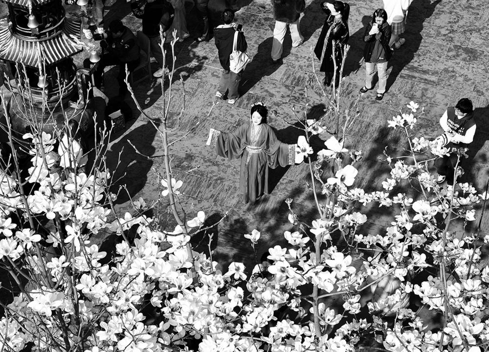 2月27日,游人在武汉市长春观景区赏花游玩(无人机照片)。 春日时节,人们来到户外踏青赏花,乐享美好春光。新华社发(赵军 摄)