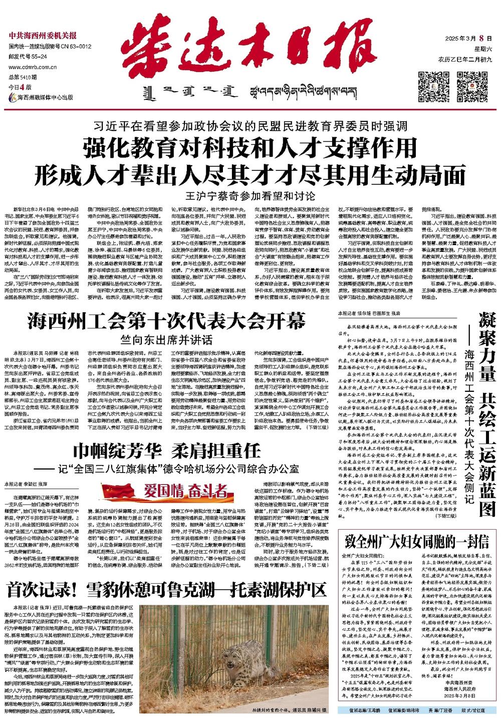 本报讯(通讯员 马丽娜 记者 林晓明 玖太本) 3月7日,海西州工会第十次代表大会在德令哈开幕。州委书记竺向东出席并讲话。省总工会党组成员、副主席、一级巡视员吴有祯致辞。州领导李科加、詹茂伟、高永红、李天林、高海源出席大会。州委常委、宣传部部长、州总工会主席索昂旺毛主持会议,州总工会党组书记、常务副主席李国顺作报告。