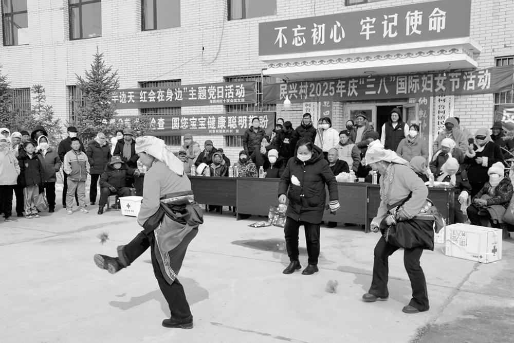 3月4日,德令哈市柯鲁柯镇民兴村为庆祝第115个“三八”国际劳动妇女节,在村委会广场开展了丰富多彩的庆祝活动。活动展示了农村妇女健康向上、乐观进取的风采,表达了她们对劳动与生活的热爱之情,也营造出隆重、热烈、喜庆的节日氛围。本报记者 查宝音 摄影报道