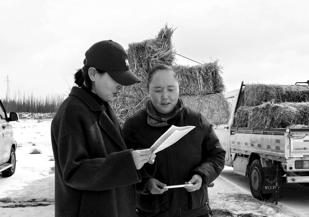 从“票子”变成了“草垛”,这背后有着特殊的考量。近日,冰雪天气来袭,皑皑白雪覆盖了整个草原,草料被深埋在积雪之下,村里不少牧户面临饲草料短缺的难题。陶哈村村“两委”和驻村工作组在挨家挨户走访时敏锐地发现这一困境,当前又正值产羊羔的关键期,只有保证母羊吃得饱、吃得好,小羊才能健康成长。