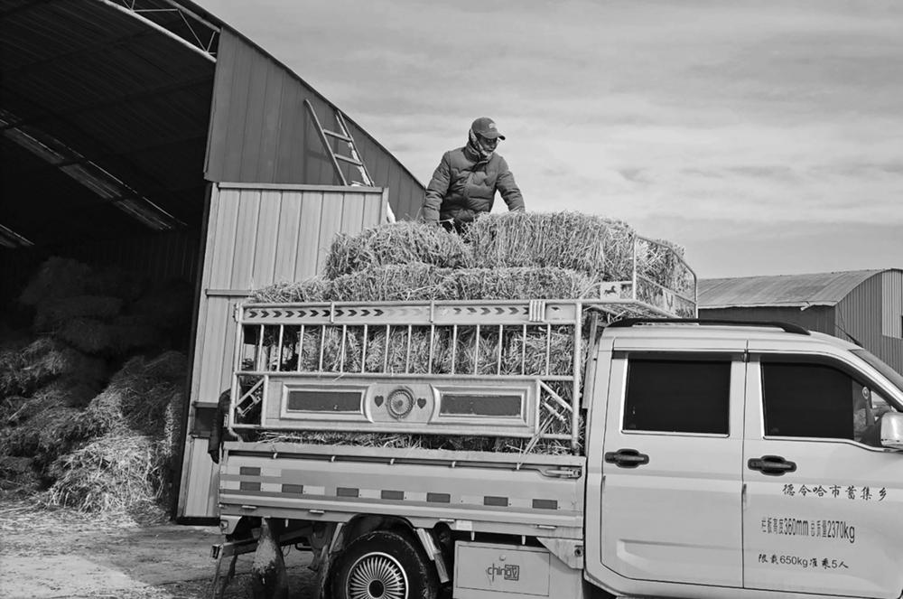 清晨,阳光还未完全驱散草原上的寒意,村民们驾驶着皮卡车和货车便在德令哈凯业种植专业合作社的库房外排起了长龙。登记、装车、拉运……随着一辆辆满载牧草的车辆缓缓驶出库房,20余吨优质饲草料带着温度,被有序发到牧民手中。