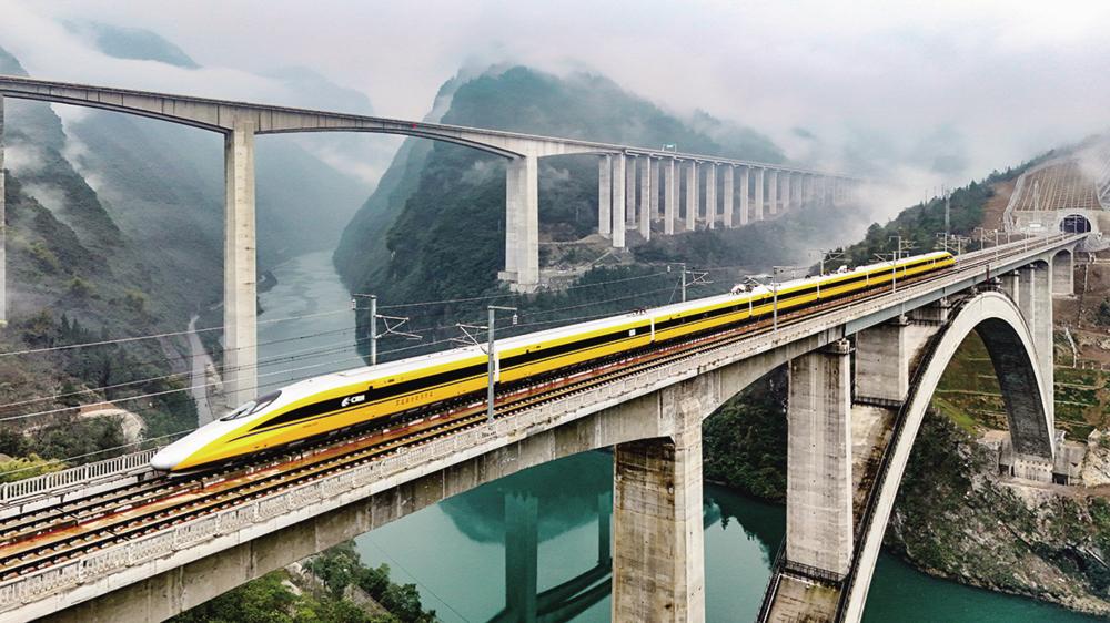 3月13日,高速综合检测列车行驶在渝厦高铁重庆段(无人机照片)。 3月13日,高速综合检测列车从重庆东站驶出,对新建渝厦高铁重庆东至黔江段(以下简称渝厦高铁重庆段)线路及各系统进行综合检测,标志着渝厦高铁重庆段首趟动车组上线,离全线开通更近一步。 新华社发(黄继吉 摄)