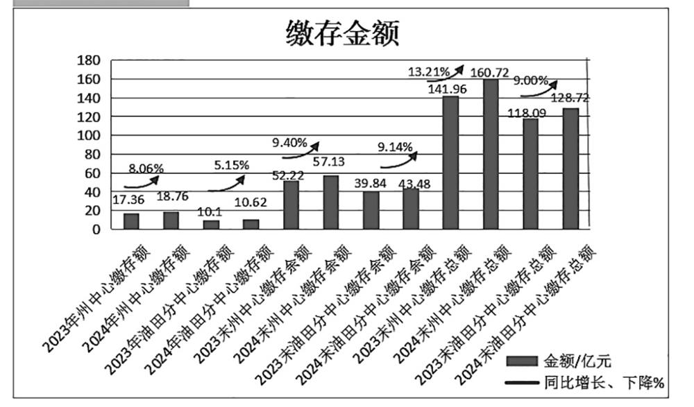 2024年缴存额29.38亿元,其中,州中心18.76亿元,同比增长8.06%,油田分中心10.62亿元,同比增长5.15 %。缴存余额100.61亿元,其中,州中心57.13亿元,同比增长9.40%,油田分中心43.48亿元,同比增长9.14%。数据对比显示,我州缴存额逐年增长,住房公积金资金供给能力不断增强。