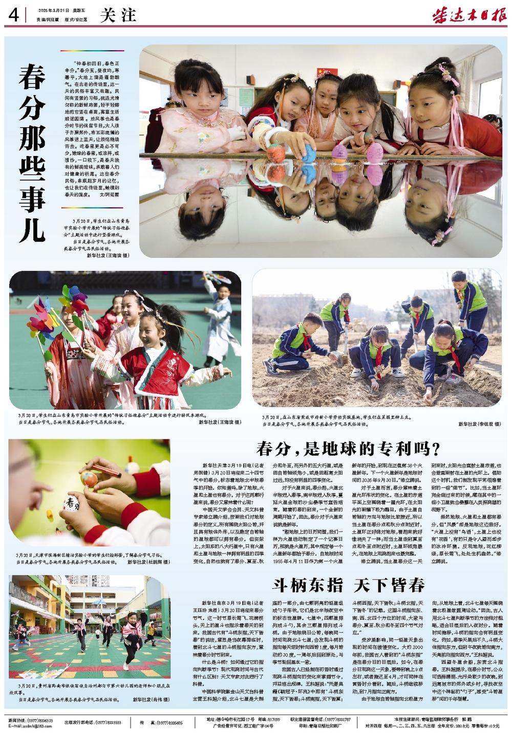 新华社南京3月19日电(记者王珏玢 朱筱) 3月20日将迎来春分节气。这一时节草长莺飞、花满枝头,天上的星斗也指示着春天的到来。我国古代有“斗柄东指,天下皆春”的说法,意思是当夜幕降临时,看到北斗七星的斗柄指向东方,意味着春分时节到来。