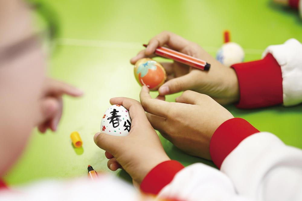3月20日,天津市滨海新区塘沽实验小学的学生们绘彩蛋,了解春分节气习俗。 当日是春分节气,各地开展各类春分节气品民俗活动。新华社发(杜鹏辉 摄)