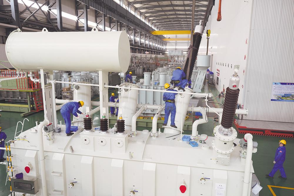 4月1日,在浙江白云浙变电气设备有限公司,工作人员在厂房装配22万伏特高压油浸式变压器。该公司输变电设备出口全球,一季度产值达2.2亿元。 开年以来,浙江省绍兴市上虞区工业生产稳健运行。当地以打造先进制造业基地为目标,加快建设现代化产业体系,一批重大项目建设持续推进及投产。1至2月,上虞区实现规上工业增加值75.4亿元,居全市第一。 新华社记者 翁忻旸 摄