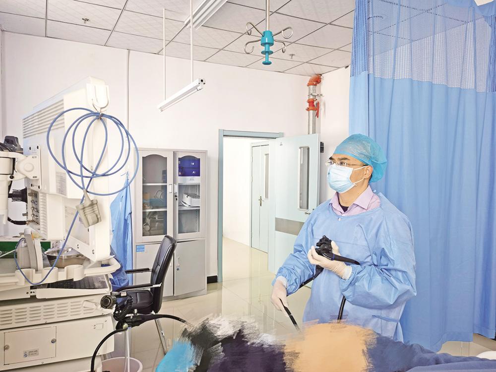 单国栋为患者做肠镜检查。图 海西州人民医院 提供