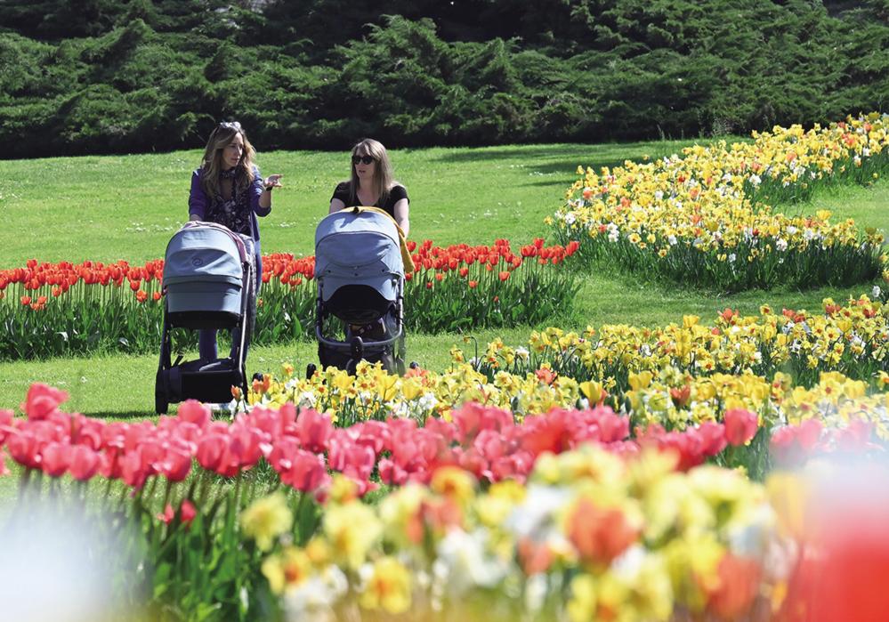 4月4日,人们在意大利维罗纳明乔河畔瓦莱焦的西古尔塔花园赏花。 春天的意大利维罗纳繁花似锦,人们纷纷来到位于明乔河畔瓦莱焦镇的西古尔塔花园踏青赏花。 新华社发(阿尔贝托·林格利亚摄)