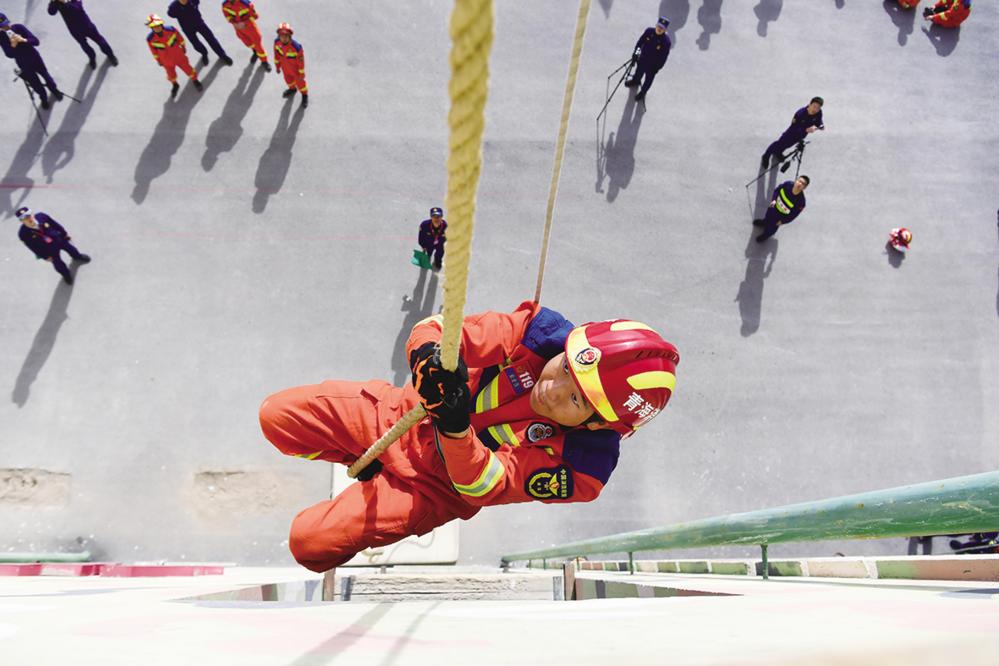 4月9日至10日,海西州消防救援支队第二届“冬训杯”体能比武竞赛正式拉开序幕,来自全州8个队站的32名指战员以热血为墨、汗水为笔,展开为期2天的巅峰较量。本次赛事不仅设置了5000米跑、100米负重跑、爬绳上四楼、400米救人疏散物资、60米肩梯登楼、4x100米接力等传统比武项目,还从装备器材革新和实战操法创新方面下硬功,确保比武成效最大限度地向战斗力聚焦、向实战化倾斜,进一步固根基、补短板、强弱项。