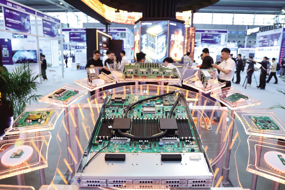 4月9日,观众在第十三届中国电子信息博览会上观展。 当日,第十三届中国电子信息博览会在深圳会展中心(福田)开幕。展会以“科技引领,‘圳’聚创新”为主题,聚焦智能终端、光电显示、人工智能、大数据存储、基础元器件、低空经济等前沿重点领域,吸引了超千家企业参展。 新华社记者 梁旭 摄