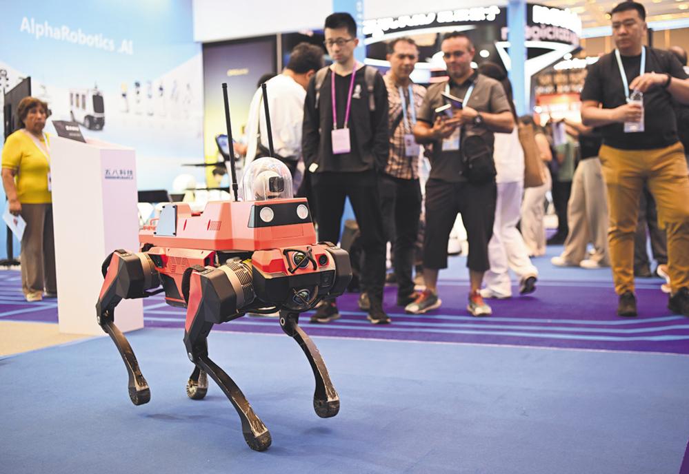 4月15日,在第137届广交会服务机器人专区,客商观看消防机器人。 4月15日,有“中国第一展”之称的广交会迎来第137届。15日至19日举行的广交会第一期以“先进制造”为主题,首次增设服务机器人专区。第一期突出先进产业和科技支撑,参展企业达11304家,其中“新三样”、数字技术、智能制造相关题材参展企业约3700家。 新华社记者 邓华 摄