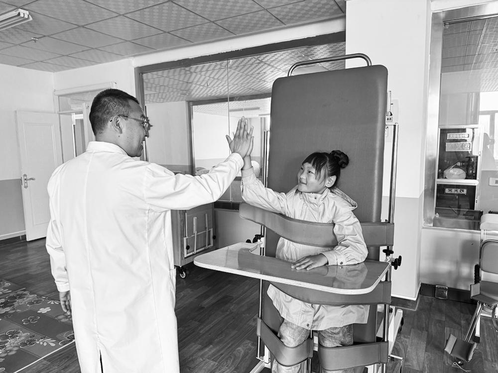 在康复中心,来自都兰县14岁的女孩张静茹已接受免费治疗1个月。奶奶郭英泉感慨:“医生根据孩子的情况定制康复计划,现在她的腿灵活多了。吃住全免费,医护人员也特别贴心。”