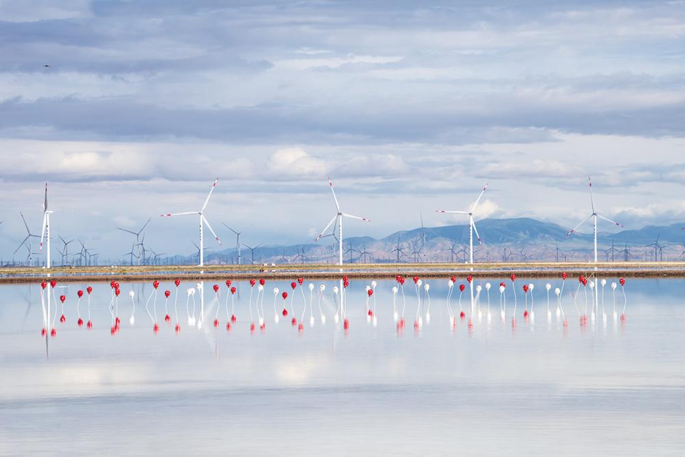 蓝白晕染的湖水泛起粼粼波纹,六月的茶卡盐湖仿佛刚从懵懂的梦中睡醒,略带羞涩地向来往的游客们展现着这个季节独有的韵味——时而随着晴天大放异彩,时而又随着乌云深藏不露。