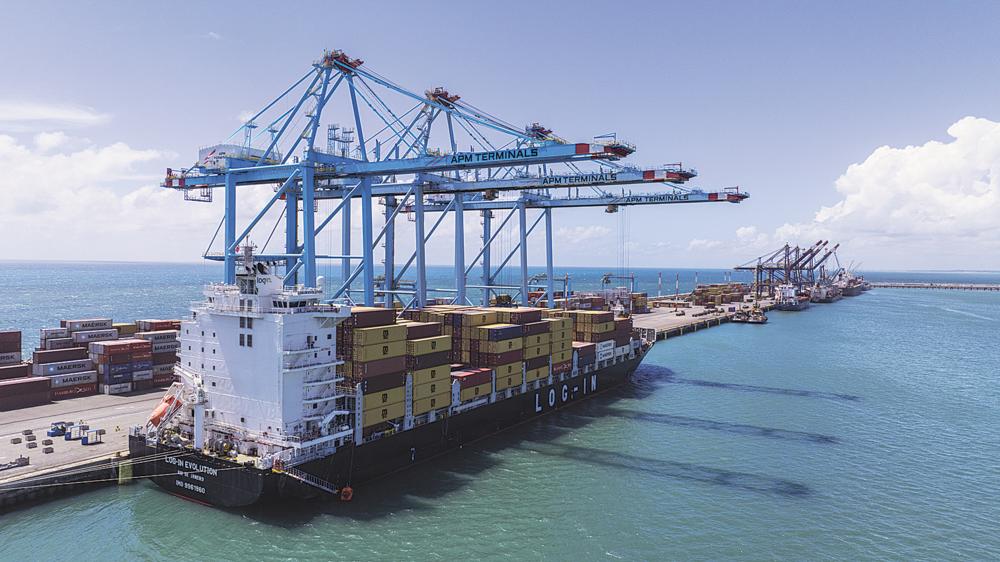 ◀这是5月8日在巴西塞阿拉州的佩森港拍摄的集装箱货轮和集装箱码头(无人机照片)。 新华社记者 王天聪 摄