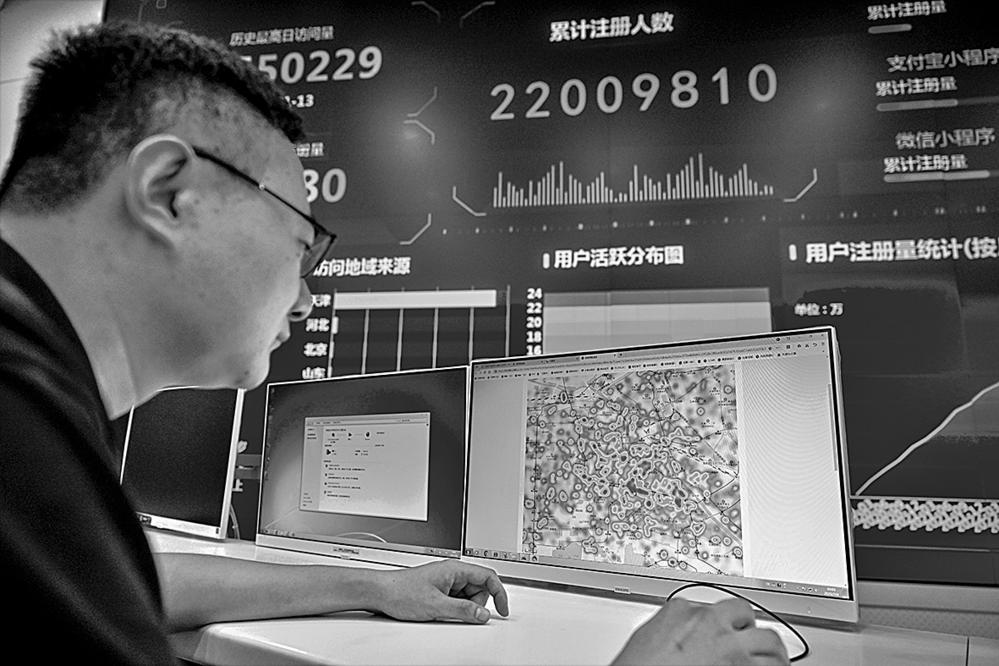 7月9日,在天津市数据发展中心,工作人员通过天津市“互联网+监管”系统实时查看城市网约车运行热力图。 近年来,天津市围绕“大城智管”目标,持续推进城市全域数字化转型,通过有效整合多部门数据资源,打造“津心办”数字社会综合应用平台、“津治通”社会治理综合应用平台、天津市“互联网+监管”系统、天津市城市运行管理服务平台等核心数字平台,实现政务事项“掌上通办”,推进城市运行管理“一网统管”,以数据汇聚共享提升城市治理的精细化与智能化水平。 新华社记者 孙凡越 摄