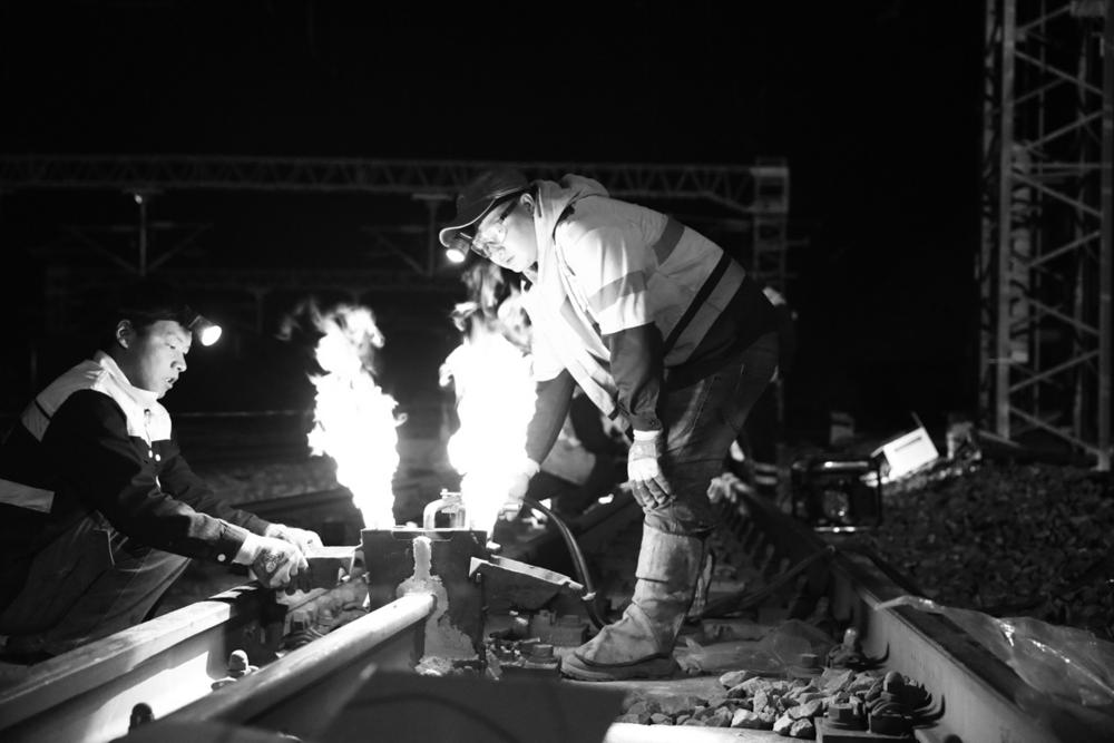23时30分,历经3个多小时高强度奋战,焊轨施工渐入尾声。对讲机中陆续传来汇报:“精细打磨完毕”“探伤工作完毕”“验收完毕,无裂纹、无气孔、无杂质……”一声声通报宣告焊接施工合格。