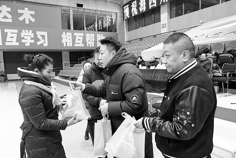 ←12月12日上午,海西州蒙藏语影视译制中心借力全州2025年冬季中老年篮球邀请赛,开展“文化惠民暖赛场 译制光影赠耆老”活动,为参赛的180余名中老年篮球运动员及爱好者送上译制电影、宣传手册等暖心礼包。译制作品涵盖大型人文纪录片《柴达木》蒙古语及藏语译制版、亲子动画《大耳朵图图》译制版、海西原创歌曲等优质内容。 活动累计公益发放译制电影U盘200余套,依托“文化+体育”融合模式,将正能量译制作品与赛事深度结合,为赛场运动员与篮球爱好者带来丰富的精神文化滋养。 本报记者 查宝音 摄影报道