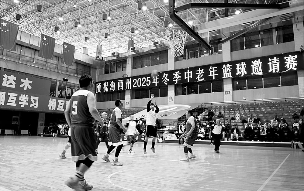 →12月12日,由海西州老年体育运动协会主办的海西州2025年冬季中老年篮球邀请赛在海西州民族体育文化活动中心篮球馆开赛,来自格尔木市、茫崖市、都兰县、乌兰县等地的十支队伍一百多名运动员参加。本次比赛既是践行全民健身战略,推动海西老年体育事业发展的具体行动,更是展现柴达木儿女老有所乐、老有所健精神风貌的重要平台,进一步增进了各市县中老年群体交流。 本报记者 查宝音 摄影报道