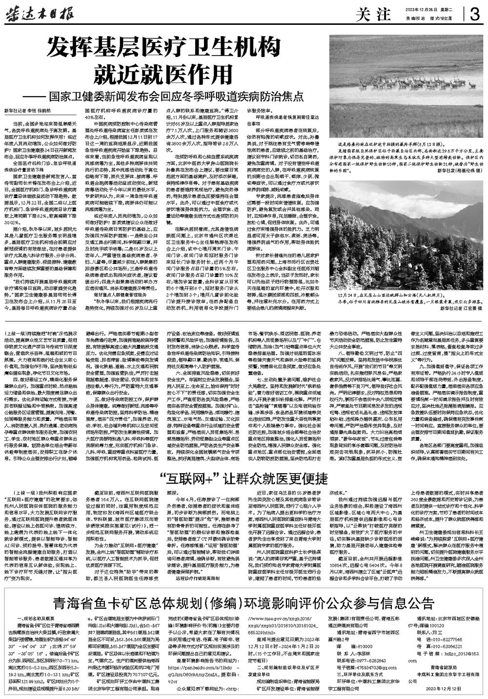 青海省鱼卡矿区总体规划(修编)环境影响评价公众参与信息公告